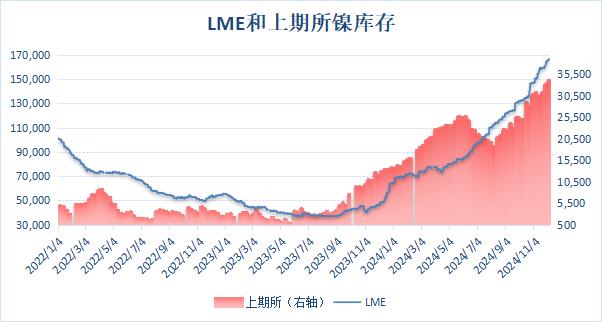 上期所公布的數(shù)據(jù)顯示,12月6日當(dāng)周,滬鎳庫(kù)存繼續(xù)回升,周度庫(kù)存增加3.26%至34,090噸,刷新逾四年最高位。